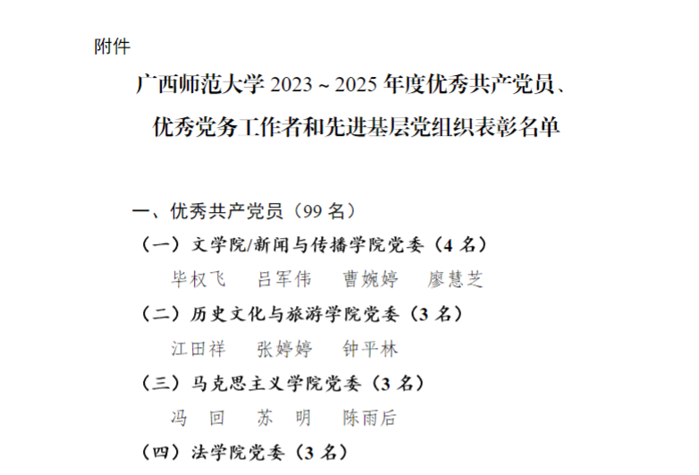 本次表彰,学院廖广睿、朱长明、方子欣3位师生同志荣获“优秀共产党员”称号,曹庆、张瑜洁2位同志获评“优秀党务工作者”,研究生第二党支部、本科生第一党支部荣获“先进基层党组织”称号。获奖范围覆盖优秀党员、优秀党务工作者和先进基层党组织全部类别,充分展现学院党建工作全面发展的良好态势。