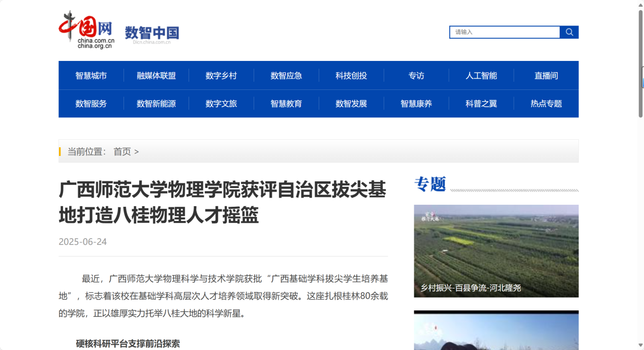 学院新闻近日,我校fb体育与技术学院获批“广西基础学科拔尖学生培养基地”的成果获国家级媒体《中国网》关注报道。报道聚焦学院以学科建设为引领、以育人为根本、以开放视野拓展格局,致力于在服务区域发展中打造物理人才摇篮的实践与成效。