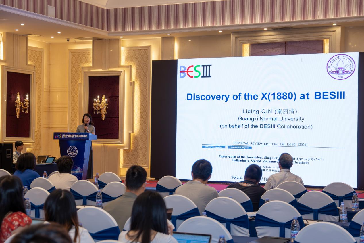 强子物理是研究物质基本结构的一个重要前沿领域。本次会议共有19个大会报告,涵盖BESIII、LHCb、CMS等实验和理论两方面关于强子谱(特别是胶球候选者、多夸克态等奇特强子态)、强子结构等研究成果。同时,会议还设置了3个专题分会场,共50个分会报告,涉及介子谱、重子谱、奇特强子态及其候选者、强子的衰变、产生以及相互作用、量子色动力学和强子结构、新的理论技术和分析工具等课题,其中我校共有5名师生(秦丽清、牛娟娟、史瑞祥三名副教授以及李海鹏和贾文浩两名博士研究生)受邀作分会报告。