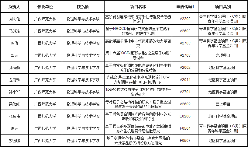 在本轮申报工作中,学院积极组织、全力推进,共提交申请39项。经评审,11个项目获得资助,立项率28%,显著高于国家平均资助率,其中面上项目1项、青年科学基金项目4项、地区科学基金项目5项以及专项项目1项。