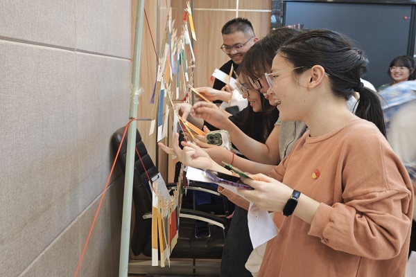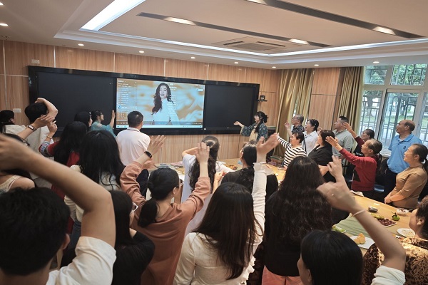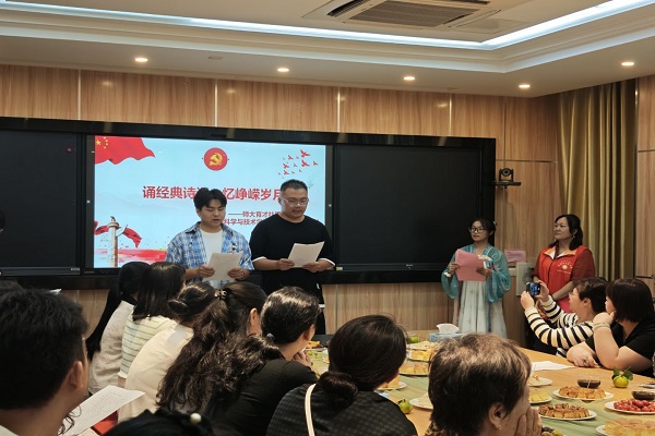 经典诵读环节,新老党员同台。社区老党员以沉稳嗓音朗诵中秋诗词,传递 “但愿人长久,千里共婵娟”的祝愿;研究生党员朗诵红色诗篇,再现革命先辈豪情,彰显红色基因代代传。趣味猜灯谜环节将气氛推向高潮。五十余条灯谜涵盖党史、传统文化、物理常识等领域,新老党员打破年龄隔阂,相互讨论。这种互动不仅增进了彼此的了解,更体现了党组织内部传帮带的优良传统。随后全体起立,共同高唱《我和我的祖国》,将现场气氛推向高潮。大家用最真挚的歌声表达对祖国的热爱与祝福,铭记中国共产党带领全国人民走过的辉煌征程,展望更加美好的未来。
