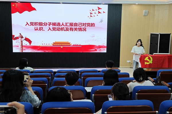 会议进入第二项议程。入党积极分子候选人任柯宇同志结合自身学习和生活实际对党的认识、入党动机以及在思想、学习、工作等方面的成长与不足进行汇报。随后,与会党员进行了充分讨论,积极发表意见,并以无记名投票方式进行表决。最终,由戴嘉豪同志宣读支部大会决议,全票通过任柯宇同志成为入党积极分子。