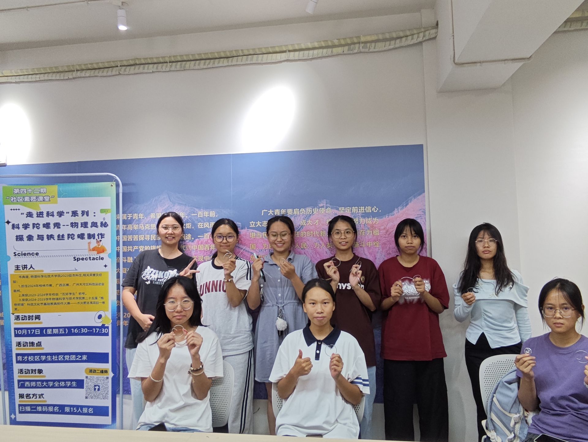 学生活动为丰富校园文化生活,营造浓厚学术氛围,激发在校学生的科学兴趣,10月17日,fb体育与技术学院在育才校区学生社区党团之家举办第二期“走进科学”社区素质课堂。本次活动以“科学陀螺秀—物理奥秘探索与铁丝陀螺的制作活动”为主题,充分利用一站式学生社区贴近学生的场地优势,将有趣的物理知识“送”到同学们身边。